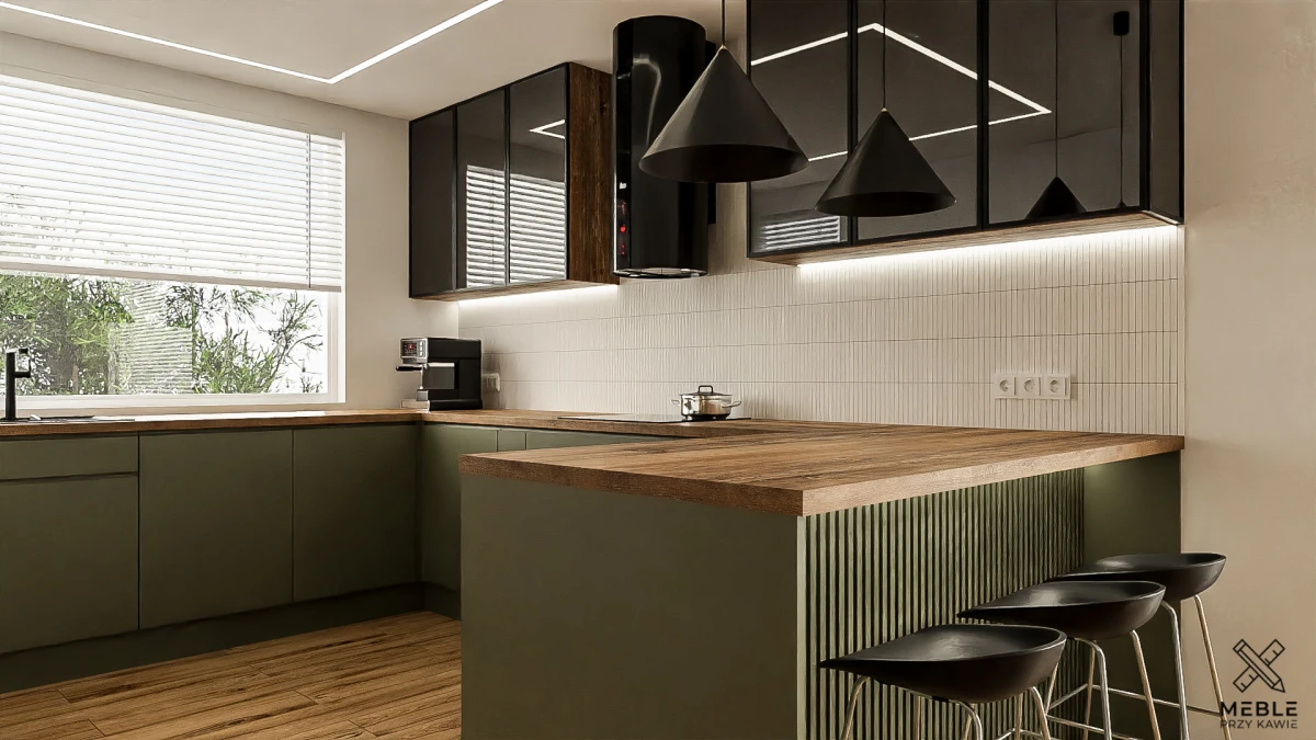 • Zieleń – kolor natury, który może dodać świeżości i życia do kuchni. Jest to świetny wybór dla osób, które chcą stworzyć relaksującą i kojącą przestrzeń. Obecnie bardzo popularny w odcieniach szałwii i oliwki.