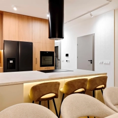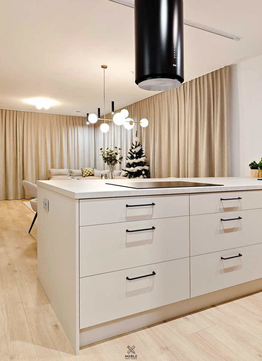 To rozwiązanie szczególnie dobrze sprawdzi się w domach i mieszkaniach, gdzie przestrzeń dzienna jest intensywnie użytkowana i ma obsługiwać wiele różnych aktywności - bez konieczności rezygnowania z estetyki. Realizacja spełnia wszystkie założenia inwestora. Jest jasna, spójna i funkcjonalna, a jednocześnie przyjazna w codziennym użytkowaniu. Otwarty układ nie powoduje wrażenia chaosu, a zastosowane rozwiązania projektowe pozwalają zachować równowagę między estetyką a praktycznością.