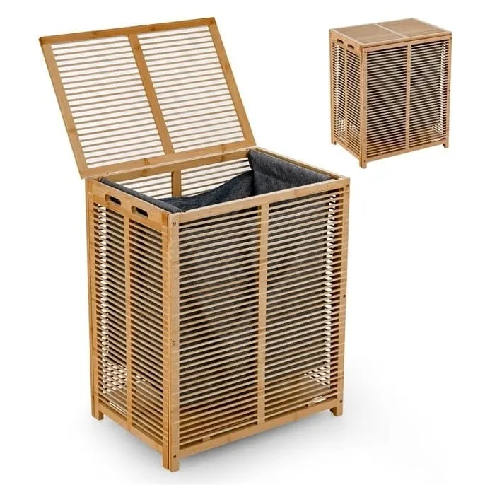 Bambusowy kosz na pranie z wyjmowaną torbą 80 L