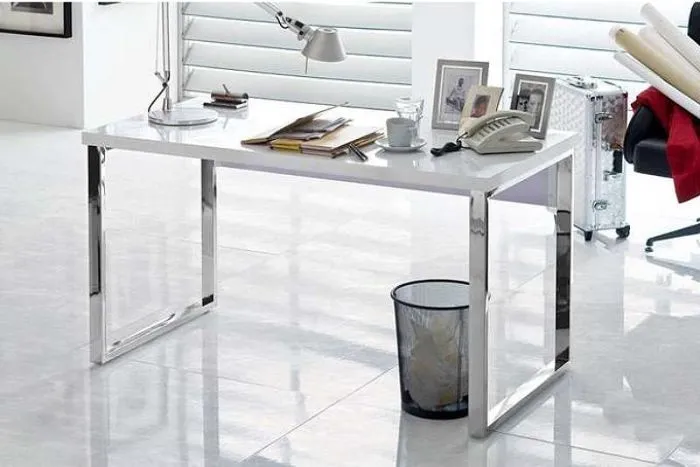 Biurko proste białe wysoki połysk 140 cm Barney