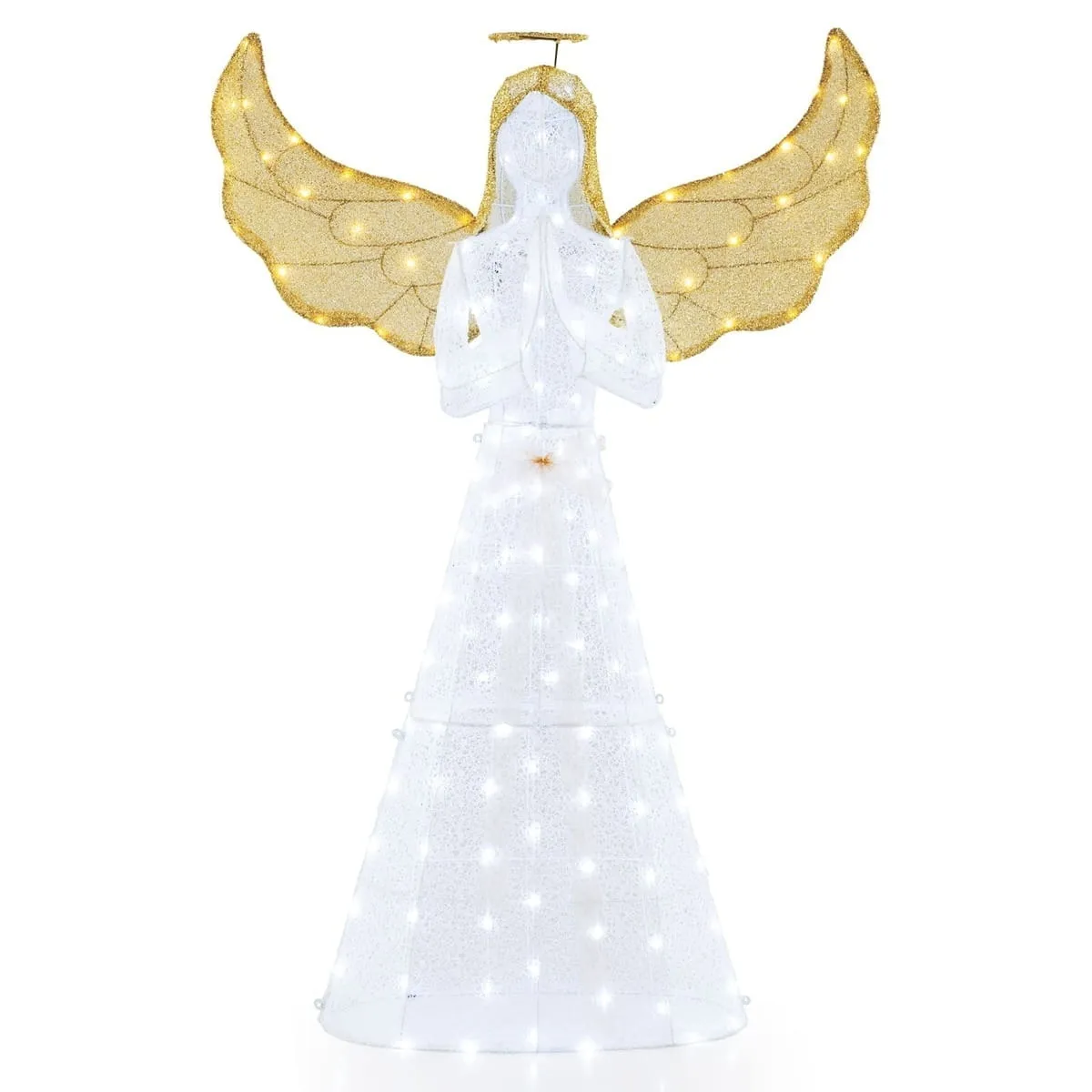 Wprowadź magiczną atmosferę świąt z aniołem LED, który emanuje delikatnym blaskiem. Ta elegancka dekoracja o wysokości 1,55 m jest ozdobiona aureolą oraz subtelnymi skrzydłami, co nadaje jej wyjątkowego, świątecznego wdzięku. Anioł jest wyposażony w 150 energooszczędnych, ciepłych diod LED, które rozświetlą każdy kąt w domu lub ogrodzie. Wykonany z wytrzymałych materiałów odpornych na warunki atmosferyczne, doskonale sprawdzi się zarówno wewnątrz, jak i na zewnątrz. To piękny symbol radości, który zachwyci Ciebie i Twoich gości przez wiele sezonów! Świetlista dekoracja: Wysoki na 1,55 m anioł to nie tylko piękny dodatek, ale i centralny punkt każdej świątecznej dekoracji. Jego subtelna aureola oraz ozdobne skrzydła nadadzą wnętrzom i ogrodom wyjątkowego, magicznego klimatu. 150 ciepłych diod LED: Wyposażony w 150 energooszczędnych diod LED, anioł emituje przyjemne światło, które tworzy nastrojową atmosferę. Ciepłe, białe oświetlenie jest nie tylko stylowe, ale także podkreśla elegancję tej dekoracji. Wytrzymały materiał: Wykonany z odpornego na deszcz, śnieg, wiatr i promienie słoneczne poliestru, anioł doskonale znosi zmienne warunki pogodowe, dzięki czemu może zdobić Twój ogród lub balkon przez całe święta, bez obaw o jego stan. Stabilne mocowanie: W zestawie znajdują się 4 solidne śledzie i 20 opasek zaciskowych, które umożliwiają solidne zamocowanie dekoracji na trawie, ziemi lub śliskiej powierzchni. Anioł będzie stał stabilnie, nawet przy mniej sprzyjającej pogodzie. Uniwersalna dekoracja na każdą przestrzeń: Anioł LED świetnie prezentuje się zarówno w przestrzeni zewnętrznej, jak i wewnętrznej. Może być ustawiony na trawniku przed domem, by witać gości, lub w salonie, wprowadzając świąteczny nastrój do każdego wnętrza. Zawartość zestawu: 1 x Anioł świąteczny LED 4 x Śledź do mocowania 20 x Opaska zaciskowa 1 x Zasilacz 1 x Instrukcja