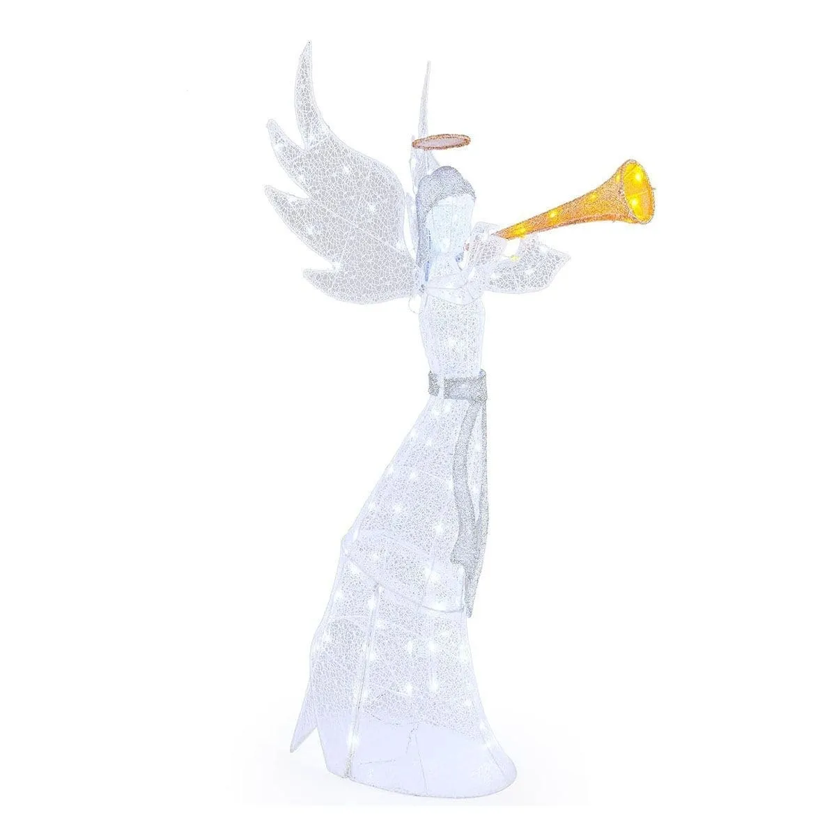 Anioł bożonarodzeniowy z oświetleniem LED to doskonały wybór, aby stworzyć wyjątkową atmosferę świąt w Twoim domu lub ogrodzie! Dzięki 100 migoczącym światełkom LED, które emanują ciepłem i blaskiem, figura ta wprowadza przytulność oraz magiczny nastrój do każdego otoczenia. Dzięki wysokiej jakości materiałom, z których jest wykonana, ozdoba ta jest niezwykle trwała, wodoodporna oraz odporna na niekorzystne warunki pogodowe, co sprawia, że idealnie nadaje się do użytku zewnętrznego przez długie lata. Stabilność podczas montażu zapewniona jest dzięki dołączonym palikom i opaskom zaciskowym, co pozwala cieszyć się pięknem dekoracji bez obaw o jej przemieszczenie się. Z powodzeniem może stanowić centralny punkt Twojej świątecznej aranżacji, zarówno na zewnątrz, jak i wewnątrz domu. Bożonarodzeniowy anioł: Rozświetl swój dom tym majestatycznie oświetlonym aniołem bożonarodzeniowym. Wyposażony w świętą aureolę, uroczą trąbkę oraz parę dużych skrzydeł, ten anioł wprowadzi świąteczną atmosferę do Twojego otoczenia. 100 przyciągających wzrok światełek LED: Anioł jest ozdobiony 100 urzekającymi światełkami LED, które migoczą duchem sezonu. Energooszczędne światła mienią się ciepłą bielą na trąbce, a chłodną bielą na głównym korpusie, dzięki czemu dekoracja jest jeszcze bardziej atrakcyjna. Długotrwałe użytkowanie na zewnątrz: Wykonany z trwałego materiału, ten oświetlony, dekoracyjny anioł został zaprojektowany tak, aby wytrzymać różne warunki pogodowe. Ozdoba jest wodoodporna oraz odporna na śnieg i wiatr, dzięki czemu może służyć przez wiele lat. Stabilna dekoracja: Stabilność jest kluczem do dekoracji podwórka, a ten anioł jest wyposażony w 4 paliki i 20 opasek zaciskowych, które zapewnią, że po montażu pozostanie na swoim miejscu. Udekoruj efektownie swoją przestrzeń: Przekształć swój dom w zimową krainę czarów dzięki tej podświetlanej figurce bożonarodzeniowego anioła. Czy to na trawniku, czy w salonie, ten anioł będzie główną atrakcją świąt. Zawartość paczki: 1 x Anioł bożonarodzeniowy LED 4 x Palik 20 x Opaska zaciskowa 1 x Adapter 1 x Instrukcja