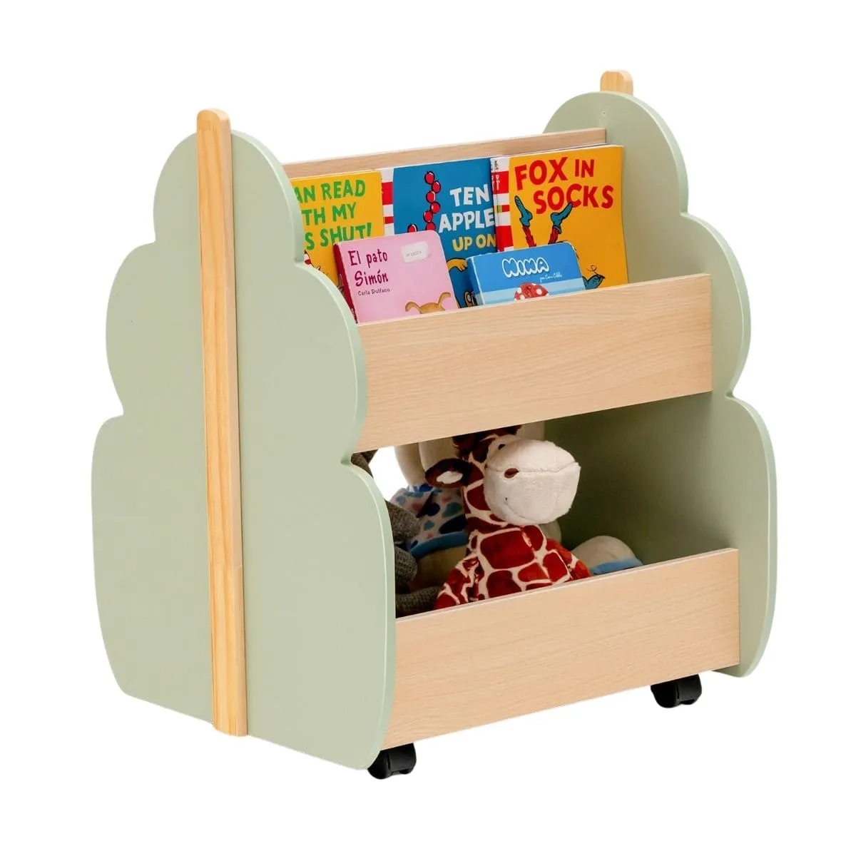 Odkryj nasz urokliwy drewniany regał na zabawki, który z pewnością przyciągnie uwagę najmłodszych! Trzy otwarte półki doskonale pomieszczą różnego rodzaju przedmioty, w tym książki, magazyny, zabawki i wiele innych! Jego wyjątkowy kształt przypominający drzewo zachęca dzieci do czytania i uczy je organizacji przestrzeni w swoim pokoju. Co więcej, regał wyposażony jest w cztery gładkie kółka, co umożliwia łatwe przesuwanie go w dowolne miejsce. To niezwykle praktyczna i wielofunkcyjna półka – nie tylko do przechowywania zabawek, ale także jako miejsce na eksponowanie ulubionych przedmiotów. Wysoka jakość i solidna konstrukcja: Nasz regał został wykonany z wysokiej jakości MDF oraz drewna sosnowego, co zapewnia mu trwałość oraz doskonałą odporność. Górne półki mogą pomieścić do 5 kg, a dolna półka wytrzyma aż 20 kg. Dodatkowo, powierzchnia regału jest pokryta wodoodpornym wykończeniem, co ułatwia czyszczenie i przedłuża jego żywotność. Łatwe przesuwanie: Dzięki czterem gładkim kółkom, nasza drewniana półka na zabawki może być łatwo przesuwana z pokoju do pokoju. Kółka są ciche podczas ruchu, co nie zakłóca spokoju pozostałych domowników. Zastosowane zaokrąglone narożniki zapewniają dodatkowe bezpieczeństwo, eliminując ryzyko urazów podczas przesuwania regału. Praktyczny design z otwartym przechowywaniem: Otwarte półki regału umożliwiają dzieciom łatwe dostrzeganie i sięganie po ulubione zabawki lub książki. Oprócz funkcji przechowywania, regał może także służyć jako wystawa, na której dzieci mogą prezentować swoje prace plastyczne, książki czy zdjęcia. Szybki i łatwy montażu: W opakowaniu znajdują się szczegółowe instrukcje montażu, które pomogą Ci szybko złożyć regał. Wszystkie elementy są numerowane, dzięki czemu nie musisz obawiać się pominięcia żadnego kroku.