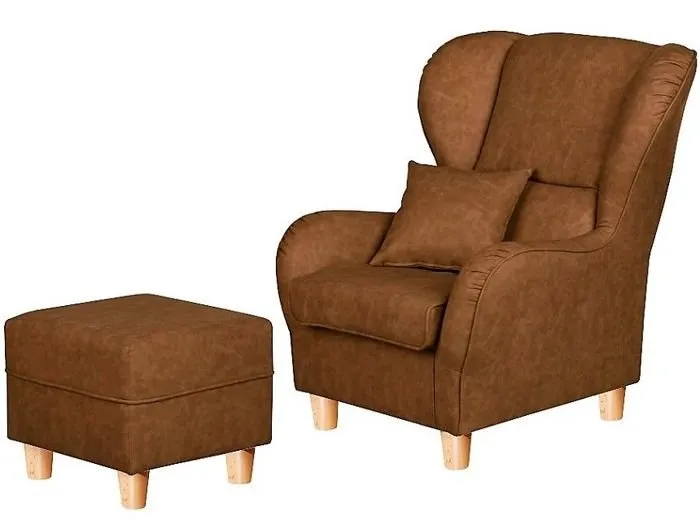 Fotel z podnóżkiem tapicerowany ekoskóra brązowy Cork