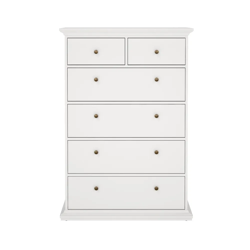Komoda wysoka z szufladami biała mat 96 cm Paris