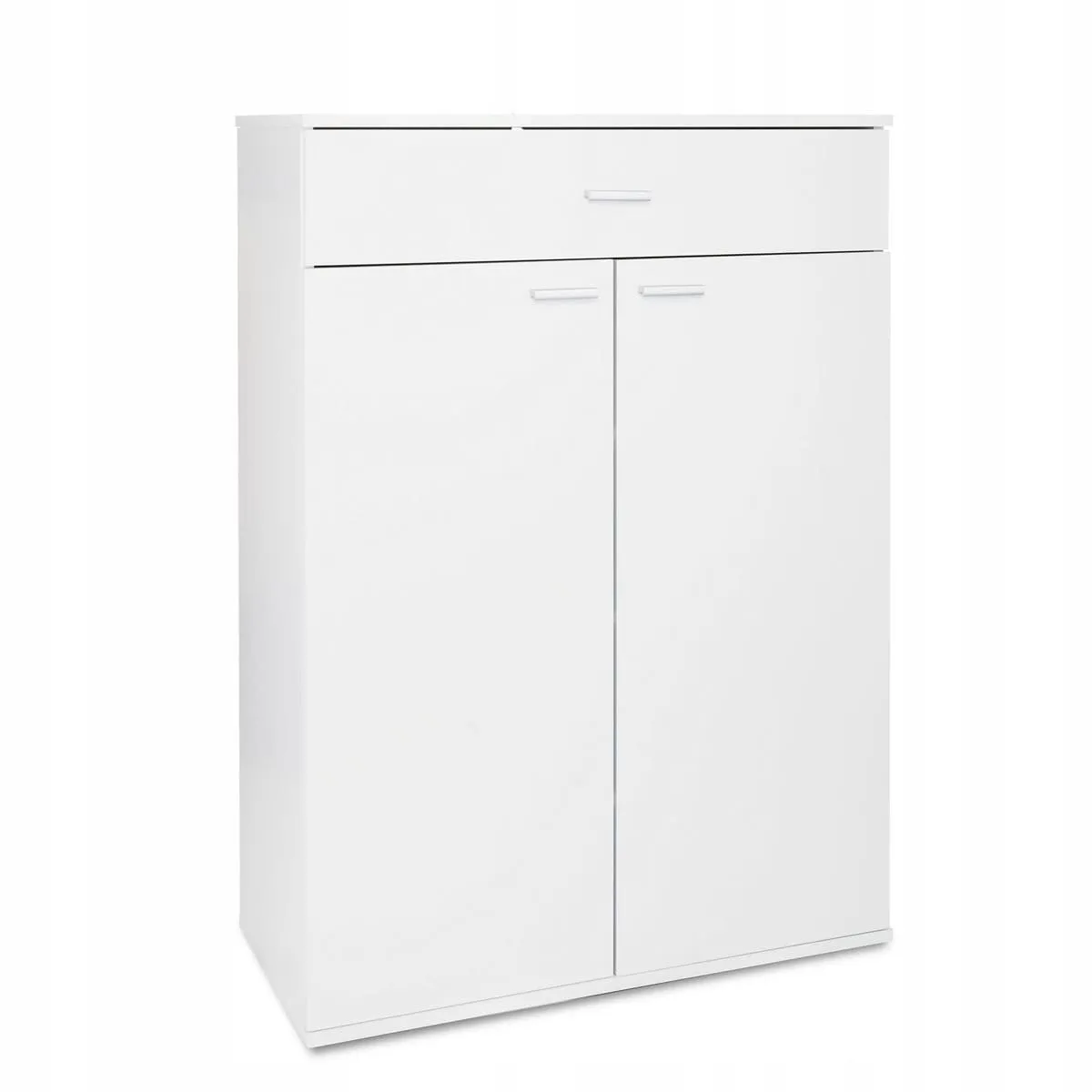 Komoda z 4 półkami Duża przestrzeń do przechowywania - pojemna szuflada oraz 4 zamykane półki zapewniają dużą przestrzeń do przechowywania i organizacji Wysokiej jakości materiały - szafka została wykonana z wysokiej jakości płyty wiórowej, dzięki czemu gwarantuje wytrzymałość, stabilność i trwałość Nowoczesny design - prosty nowoczesny styl świetnie sprawdzi się w salonie, sypialni, jadalni oraz biurze. Ponadczasowa forma doskonale pasuje do każdego motywu dekoracyjnego Łatwość montażu - komoda jest bardzo prosta w montażu. Wszystkie elementy potrzebne do instalacji zostały dołączone do zestawu. W celu zwiększenia bezpieczeństwa użytkowania szafkę można przymocować bezpośrednio do ściany