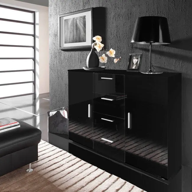 Komoda z szufladami i drzwiami czarna mat / wysoki połysk 132 cm Simple