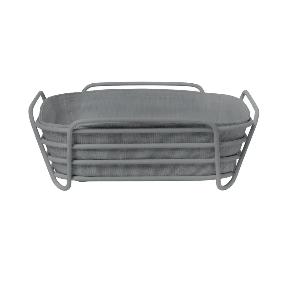 Całość składa się ze stalowego koszyka oraz bawełnianego wkładu w szarym kolorze. Materiał nadaje się do kontaktu z żywnością.