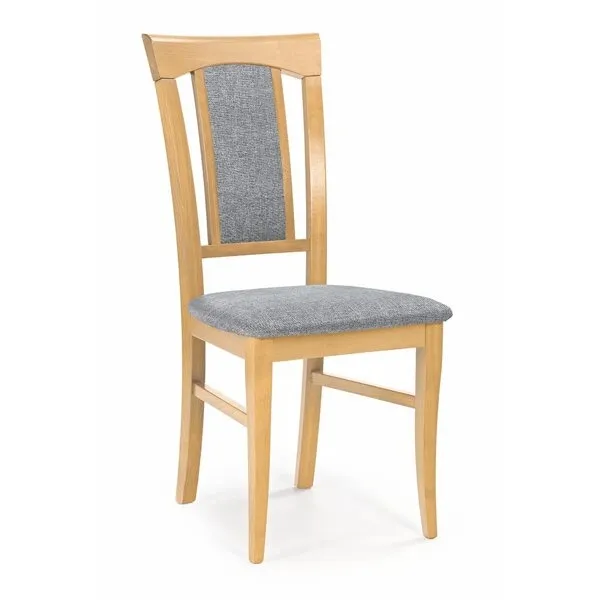 Krzesło do jadalni drewniane tapicerowane szare / dąb miodowy Konrad