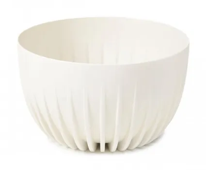 Doniczka Mira zawiera wkład, który skutecznie oddziela nadmiar wilgotności bez potrzeby korzystania z keramzytu lub innych podsypek. Wkład pozwala także na zmniejszenie zużycia ziemi.