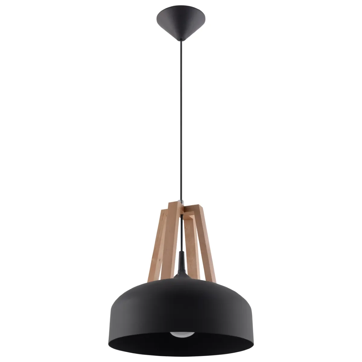 Czarny lub biały klosz wzbogacony drewnianym akcentem - design naszej nowoczesnej lampy wiszącej aż woła o miejsce w eleganckim wnętrzu. Szybko się w nim rozgości, wprowadzając niepowtarzalny klimat.