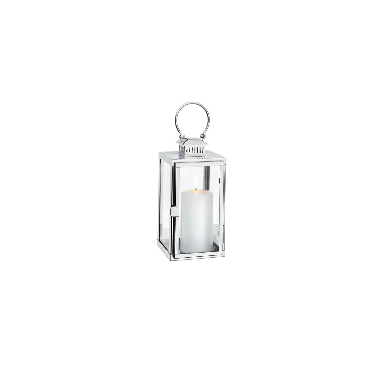Lampion posiada stelaż ze stali nierdzewnej oraz szklane ścianki, które chronią płomień przed zdmuchnięciem np. przez wiatr. Wewnątrz miejsce na świeczkę. Drzwiczki otwierają się bardzo łatwo, nie będziesz mieć więc problemów z wymianą świecy.