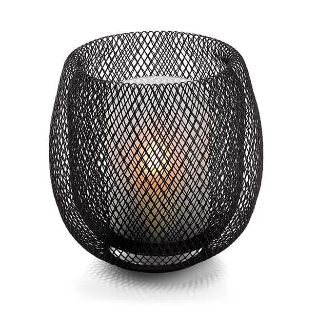 Mesh wykonany jest ze stali malowanej proszkowo i ma ażurową konstrukcję, która doskonale współgra z wkładem z mlecznego szkła. Dzięki temu światło świec jest jeszcze bardziej rozproszone.