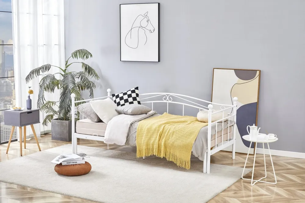 Łóżko jednoosobowe z wysuwanym dodatkowym materacem białe 90 x 200 cm Ariza