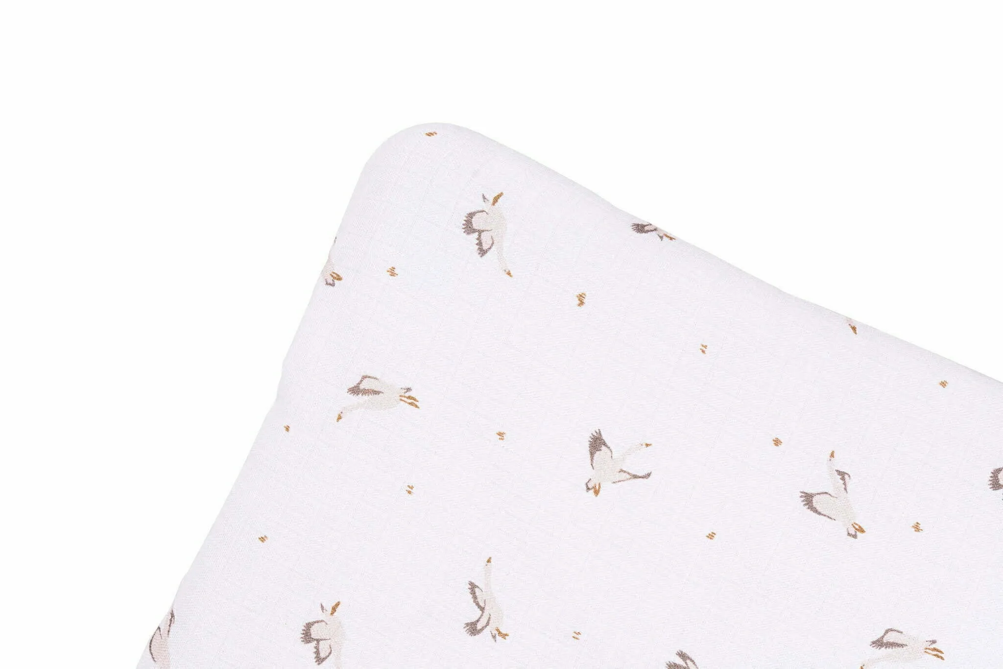 Pościel z wypełnieniem wykonana z bambusa i bawełny o strukturze tetry w pattern w gąski.