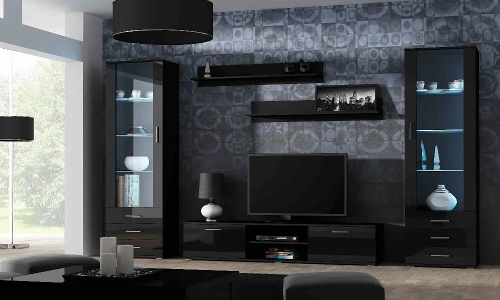 Meblościanka do salonu czarna mat / połysk 350 cm Simple