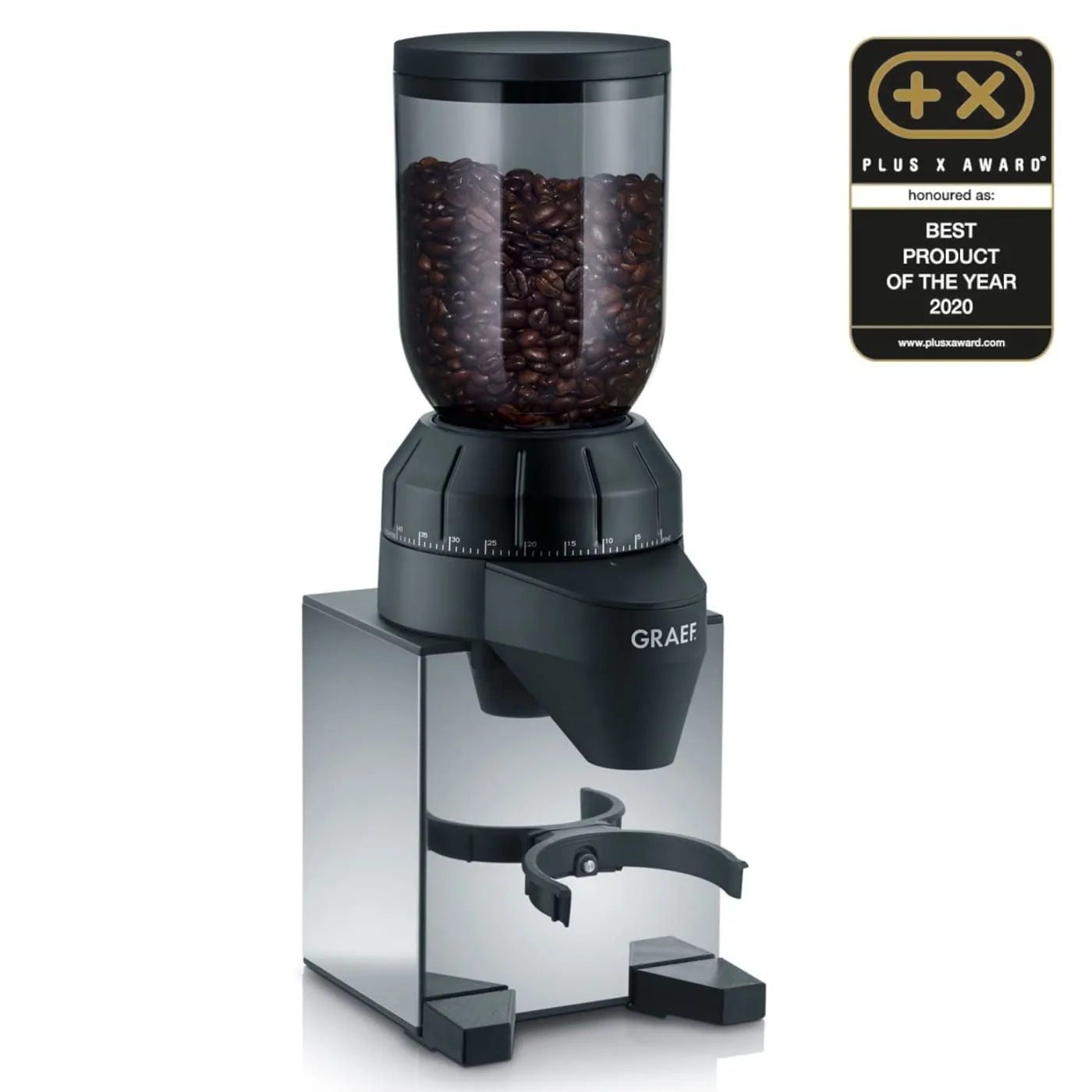 Profesjonalny młynek, idealny do przygotowania kawy na espresso <br /> Wysokiej jakości obudowa ze stali nierdzewnej i aluminium <br /> Młynek stożkowy ze stali nierdzewnej pozwalajacy na zachowanie aromatu <br /> 40 ustawień stopnia zmielenia z dodatkową regulacją precyzyjną <br /> Silnik wolnobieżny o mocy 128 W pozwalający na zachowanie aromatu <br /> Automatyczna funkcja mielenia bezpośrednio do kolby filtra na kawę <br /> Wkładka antystatyczna <br /> Pojemnik na kawę ziarnistą 250g <br /> W zestawie pojemnik na fusy i dwie obejmy na kolby do filtrów <br /><br />Dane techniczne:<br />Wymiary;/>Długość: 190 mm,/>Szerokość: 130 mm,/>Wysokość: 362 mm./>Moc: 128 W./>Zasilanie: 230 V.