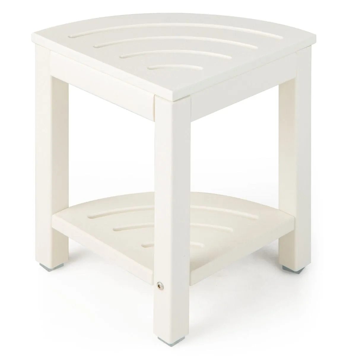 Wykonany z wysokiej jakości materiału HDPE, narożny stołek prysznicowy jest całkowicie wodoodporny. Wyposażony w praktyczną półkę do przechowywania, doskonale wykorzystuje ograniczoną przestrzeń w łazience, ale może być także używany w wielu innych miejscach, takich jak balkon, w ogród czy na patio. Jego solidna konstrukcja pozwala na wytrzymywanie obciążenia do 150 kg, a antypoślizgowe nóżki zapewniają dodatkową stabilność. 100% HDPE: Stołek prysznicowy został wykonany z polietylenu o wysokiej gęstości, który jest nie tylko trwały, ale również całkowicie odporny na działanie wody i pleśni, co czyni go idealnym wyborem do użycia w łazience czy pod prysznicem. Wyjątkowa jakość wykonania gwarantuje, że jego powierzchnia jest gładka i nie pozostawia śladów. Szerokie zastosowanie: Stołek posiada otwory drenażowe, które zapobiegają zatrzymywaniu się wody na jego powierzchni. W przeciwieństwie do tradycyjnych stołków prysznicowych wykonanych z drewna lub bambusa, ten z materiału HDPE nie wymaga specjalnej pielęgnacji. Stołek z półką: Jego konstrukcja czyni go doskonałym wyborem do umieszczenia w narożniku łazienki, prysznica i innych małych przestrzeni, zapewniając wygodę podczas korzystania z prysznica czy golenia się. Gładki, zaokrąglony blat chroni przed uderzeniami i zadrapaniami. Nośność 150 kg: Posiada solidną konstrukcję i waży zaledwie 5 kg. Może wytrzymać obciążenie wynoszące 150 kg. Antypoślizgowe gumowe nóżki zapewniają stabilność stołka podczas siedzenia czy innych czynności. Łatwy montaż: Ten narożny stołek prysznicowy jest dostarczany z łatwymi do zrozumienia instrukcjami oraz kompletem niezbędnych akcesoriów, co pozwala na szybki montaż.
