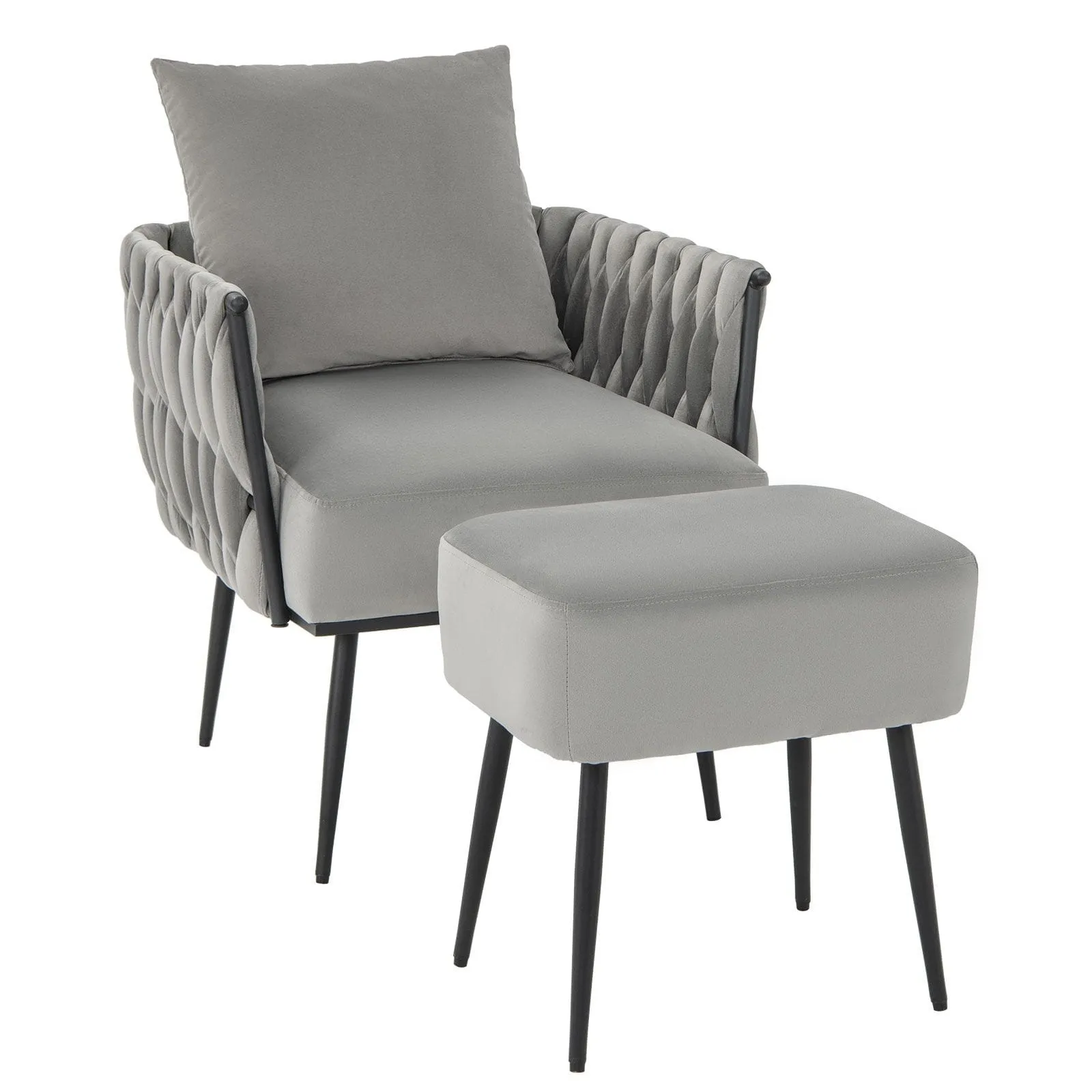 Nowoczesne holenderskie aksamitne krzesło z otomaną szare