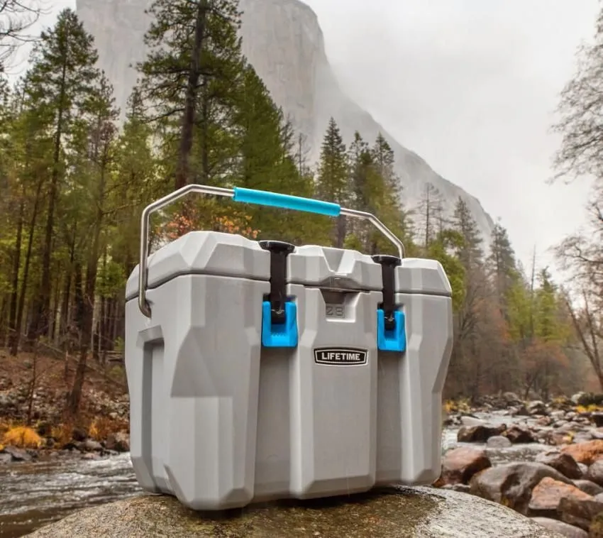 Po prostu silny jak niedźwiedź! Nowość od największego na świecie producenta plastikowych szop ogrodowych Lifetime jest już dostępna również u nas! Lifetime Cooler nie jest zwykłą lodówką, ale znacznie lepszą. Prawdopodobnie znasz problem podczas biwakowania: Raz po raz lodówka musi być przenoszona do namiotu lub na kemping i podłączana do prądu. Te dni przechodzą do historii dzięki dożywotniej „Coolerowi” Premium od dzisiaj!  Lodówka po włożeniu lodu zapewnia zimne napoje przez 5 dni! „Cooler” zawdzięcza ten niewiarygodnie wysoki poziom zatrzymywania lodu dwuwarstwowemu uretanowi, który jest znacznie bardziej wytrzymały niż porównywalne tworzywo sztuczne (HDPE). Test grizzly wyraźnie to udowodnił! Pudełko było testowane przez wiele dni w zagrodzie grizzly, ale nawet dorosły grizzly nie mógł nic zrobić z tym fajnym pudełkiem. Ale nie tylko pod tym względem „Cooler” potrafi zabłysnąć. Stabilny i wyściełany uchwyt do przenoszenia zapewnia wygodny transport. Napoje w butelkach można otwierać za pomocą zintegrowanego otwieracza do butelek. Lodówkę można oczywiście zamknąć na kłódkę (brak w zestawie). Dożywotnie korzyści chłodzenia: