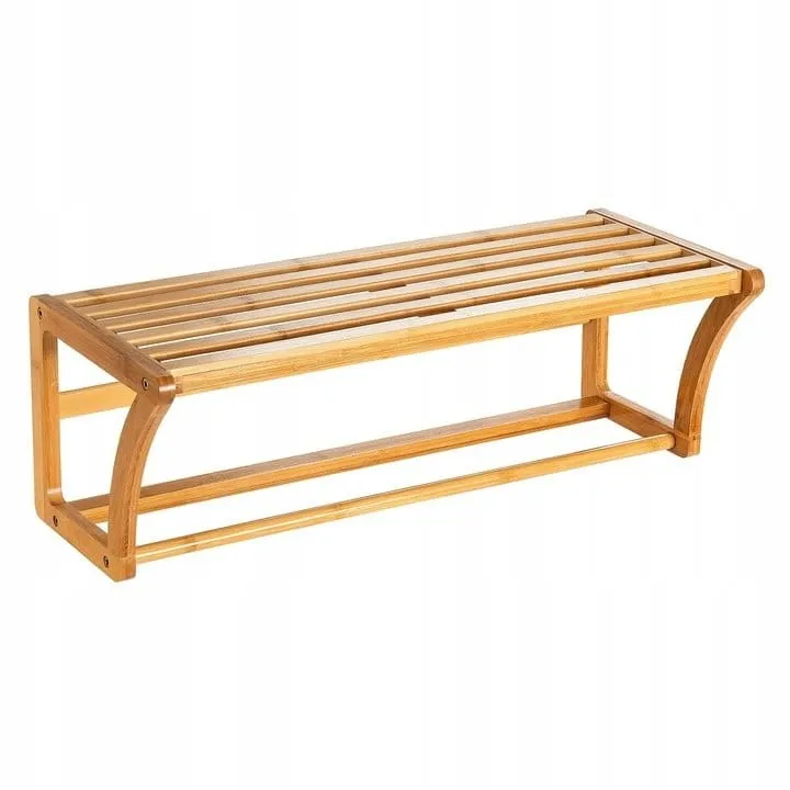 Bambusowa półka ścienna Duża przestrzeń do przechowywania - szeroka otwarta półka i długi drążek zapewniają dodatkową przestrzeń do przechowywania kosmetyków, akcesoriów i ręczników Stabilna konstrukcja - solidna, odporna na wilgoć konstrukcja z drewna bambusowego zapewnia trwałość na lata Klasyczny design - prosty, klasyczny styl świetnie sprawdzi się w każdej łazience. Ponadczasowa forma doskonale pasuje do każdego motywu dekoracyjnego Łatwość montażu - półka jest bardzo prosta w montażu. Wszystkie elementy potrzebne do instalacji zostały dołączone do zestaw