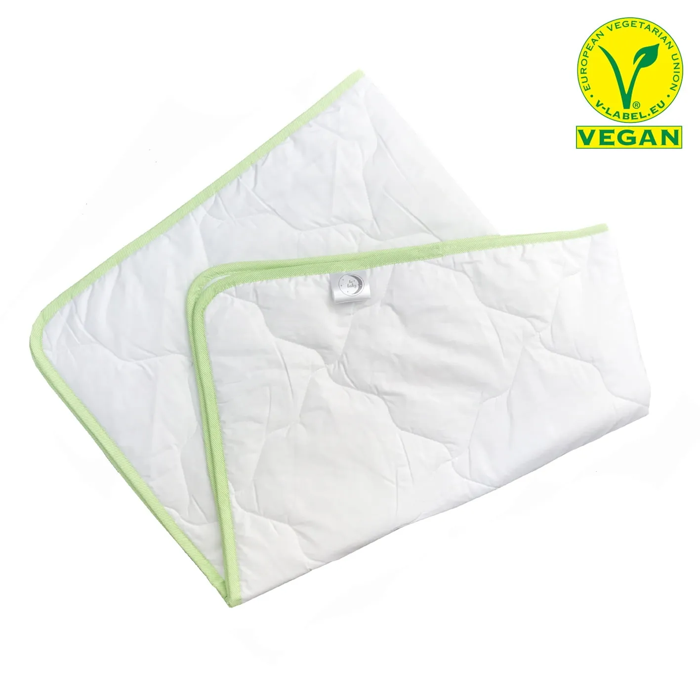 Pierwsze na polskim rynku wegańskie komplety dla dzieci z pokryciem z jedwabistej i przyjemnej w dotyku bawełny z bambusem posiadającej doskonałe właściwości antystatyczne. Wypełnienie stanowi mieszanka (50/50) włókna celulozowego wyprodukowanego ze zmiażdżonych łodyg bambusa, pochodzących ze zrównoważonego źródła surowca naturalnego z poliestrem dla zapewnienia wysokiej wytrzymałości i trwałości. Dzięki naturalnej zdolności włókien bambusowych do redukcji wilgotności w pościeli nie rozwijają się bakterie, pleśń i roztocza.Produkty są opatrzone certyfikatem V-Label potwierdzającym, że na żadnym etapie jego pozyskania, produkcji i przetwarzania nie użyto ani nie zastosowano składników i substancji pochodzenia zwierzęcego.