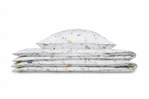 Pościel bawełniana Terrazzo. Główną inspiracją kolekcji pościeli Nature, stworzonej wspólnie z projektantką wnętrz - Agnieszką Chlebdą, była natura. Unikatowe wzory tworzone przez naturę, uchwycone i wydrukowane na miękkiej bawełnie powodują że każdy komplet jest niepowtarzalny. Jako odpowiedzialny polski producent zwracamy uwagę na każdy szczegół, dlatego pościel We Love Beds jest: naturalna, wykonana w 100% bawełny, zaprojektowana i wykonana w Polsce przez nasze doświadczone polskie krawcowe, bardzo gęsto tkana , wytrzymała, a zarazem lekka, szczególnie przyjemna i miła dla skóry, zapinana na zamek błyskawiczny specjalnie skonstruowany do pościeli ( dla lepszego komfortu użytkowania ) japońskiej marki YKK z dożywotnią gwarancją* w identycznym kolorze Pantone co bawełna, uszyta nićmi światowego lidera, identycznymi w kolorze Pantone co bawełna, wykończona ozdobną bizą - lamówką w kolorze szarym, charakterystycznym dla naszej marki, pakowana w eleganckie prezentowe pudełko. Pościel nie obejmuje wypełnienia. *dożywotnia gwarancja zamka – wymienimy zamek nawet po kilku latach użytkowania całkowicie GRATIS!