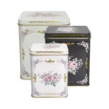 Puszki zestaw 3 szt. MARLEY WHITE w trzech wielkościach ozdobione pięknym rustykalnym kwiatowym wzorem duńskiej firmy Green Gate.Idealne do przechowywania produktów spożywczych, na smakołyki lub inne przysmaki. Możesz je także wykorzystać w domowym biurze czy łazience.