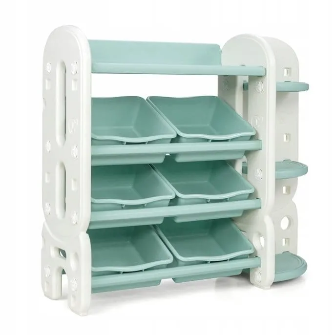Organizer na zabawki Duża przestrzeń do przechowywania - 4 półki oraz 6 wyjmowanych pojemników zapewniają dużą przestrzeń do przechowywania ulubionych zabawek Twojego dziecka. Organizer idealnie sprawdzi się w pokoju dziecięcym, przedszkolu, szkole oraz świetlicy Wysokiej jakości materiały - regał został wykonany z wysokiej jakości bezwonnego tworzywa HDPE, dzięki czemu gwarantuje niezrównaną wytrzymałość, stabilność i trwałość Łatwość montażu - regał jest bardzo prosty w montażu i nie wymaga użycia narzędzi. Wszystkie elementy potrzebne do instalacji zostały dołączone do zestawu