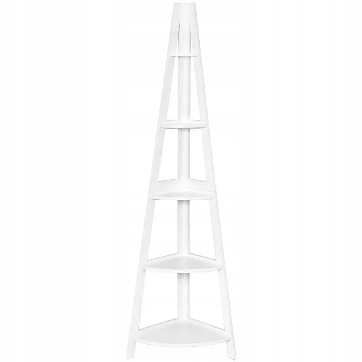 5-poziomowy regał narożny Duża przestrzeń do przechowywania - 5 otwartych półek zapewnia dodatkową przestrzeń do ekspozycji Twoich ulubionych dekoracji i akcesoriów. Każda półka ma inny rozmiar: największa znajduje się na dole, natomiast najmniejsza na szczycie Wysokiej jakości materiały - regał został wykonany z wysokiej jakości płyty MDF, dzięki czemu gwarantuje wytrzymałość, stabilność i trwałość Nowoczesny design - prosty, nowoczesny styl świetnie sprawdzi się w salonie, sypialni, czy pokoju dziecięcym. Ponadczasowa forma doskonale pasuje do każdego motywu dekoracyjnego Łatwość montażu - regał jest bardzo prosty w montażu. Wszystkie elementy potrzebne do instalacji zostały dołączone do zestawu. W celu zwiększenia bezpieczeństwa użytkowania regał można przymocować bezpośrednio do ściany