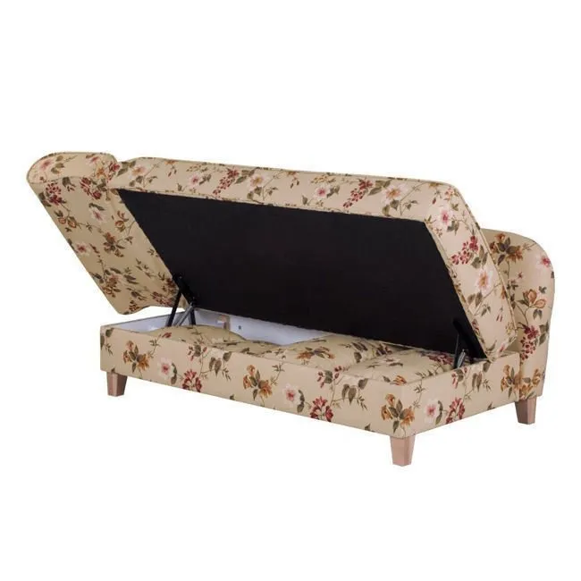 Sofa 2-osobowa z funkcją spania tapicerowana kremowa w jesienne kwiaty Ennis