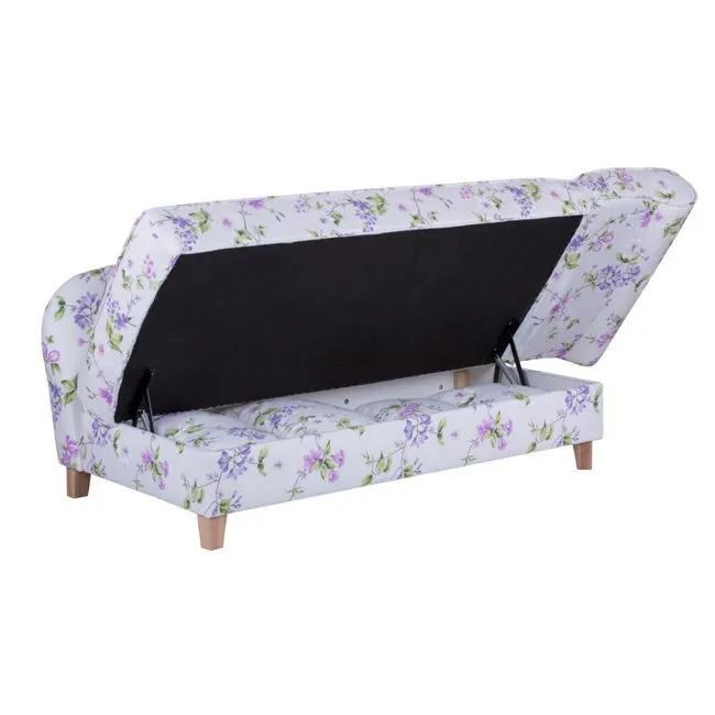 Sofa 2-osobowa z funkcją spania tapicerowana wielokolorowa w fioletowe kwiaty Ennis