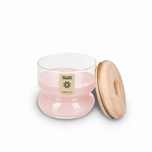 THALIA - seria wyjątkowych świec zapachowych wykonanych z ekologicznego sojowego wosku to prawdziwa uczta dla zmysłów. Nie tylko urzekają nas niezwykłymi aromatami, ale także zachwycają unikalnym kształtem szklanych naczyń, specjalnie zaprojektowanym dla marki We Love Candles i opatentowanym. Raspberry Smoothie to zapach pełen rozkosznej energii, radości i optymizmu. Soczyste maliny tworzą energetyczną i radosną atmosferę, przypominając świeżo przygotowany smoothie. To intensywna kompozycja, która odzwierciedla świeżość i pozytywne wibracje, inspirując do radosnego podejścia do dnia. Raspberry Smoothie: Wosk: sojowy Waga świecy: 380 g Waga wosku: 170 g Zapach: malin Knot: drewniany (skwierczy jak drewno w kominku) Czas palenia: 52 h Naczynie: szkło ręcznie dmuchane w polskiej hucie szkła Wieczko: drewno bukowe Kolor wosku: różowy Wysokość świecy: 9.5 cm Średnica świecy: 8.8 cm Opakowanie: ozdobny kartonik Świece z kolekcji THALIA dostępne są w dwóch różnych rozmiarach: 170g oraz 380g. Oba warianty zostały wykonane z ekologicznego sojowego wosku, co sprawia, że są nie tylko piękne, ale także przyjazne dla środowiska