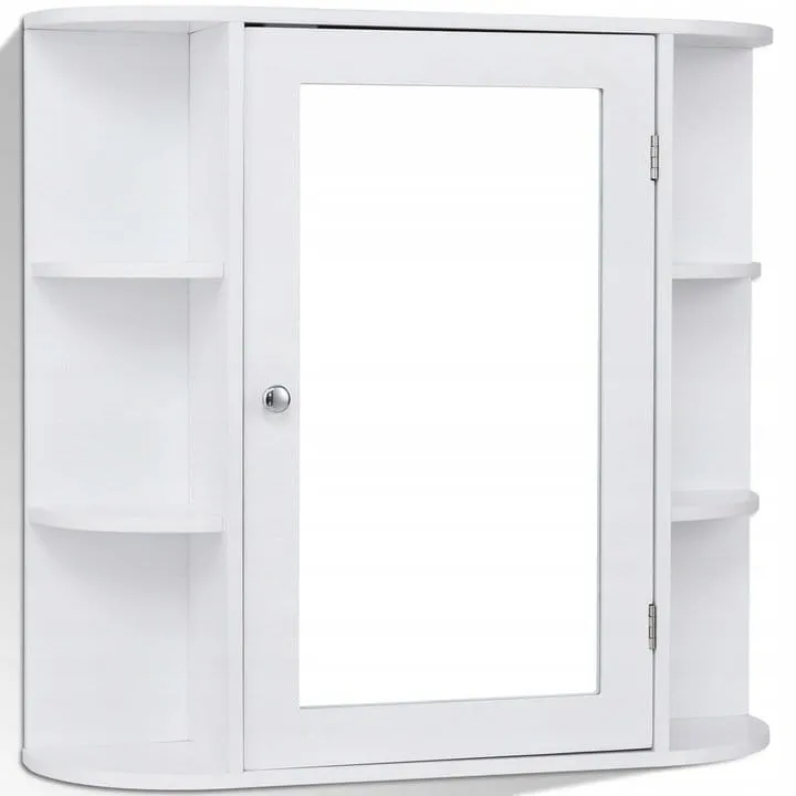 Szafka łazienkowa z lustrem Duża przestrzeń do przechowywania - 4 wewnętrzne półki z możliwością regulacji wysokości oraz 6 półek bocznych zapewniają dużą przestrzeń do przechowywania Twoich ulubionych kosmetyków i akcesoriów Wysokiej jakości materiały - szafka łazienkowa została wykonana z wysokiej jakości odpornej na wilgoć płyty MDF oraz szklanego lustra, dzięki czemu gwarantuje niezrównaną wytrzymałość, stabilność i trwałość Klasyczny design - dzięki prostemu klasycznemu stylowi szafka świetnie sprawdzi się w każdej łazience. Ponadczasowa forma doskonale pasuje do każdego motywu dekoracyjnego Łatwość montażu - szafka jest bardzo prosta w montażu. Wszystkie elementy potrzebne do instalacji zostały dołączone do zestaw