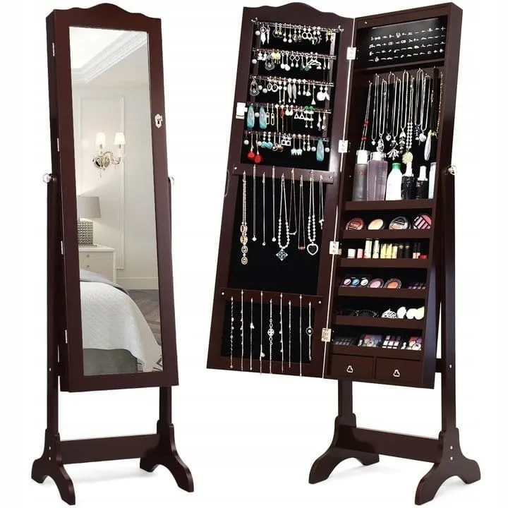 Szafka na biżuterię i akcesoria z lustrem i światłami LED