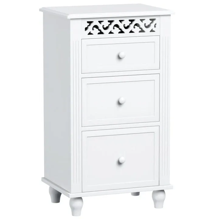 Szafka nocna z 3 szufladamiDodatkowe miejsce do przechowywania - 3 pojemne szuflady zapewniają dodatkowe miejsce do przechowywania i organizacjiWysokiej jakości materiały - szafka została wykonana z wysokiej jakości płyty MDF oraz drewna sosnowego, dzięki czemu zapewnia wytrzymałość, stabilność i trwałośćKlasyczny design - prosty, klasyczny design sprawdzi się w każdym pomieszczeniu. Mebel może służyć jako szafka nocna w sypialni lub dodatkowy stolik boczny w salonieŁatwość montażu - szafka jest bardzo prosta w montażu. Wszystkie elementy potrzebne do instalacji zostały dołączone do zestawuDane szczegółoweMateriały: płyta MDF, drewno sosnoweKolor: białyMontaż: wymaganyWymiarySzerokość: 40.5 cmGłębokość: 30.5 cmWysokość: 72 cmWaga: 12.9 kg