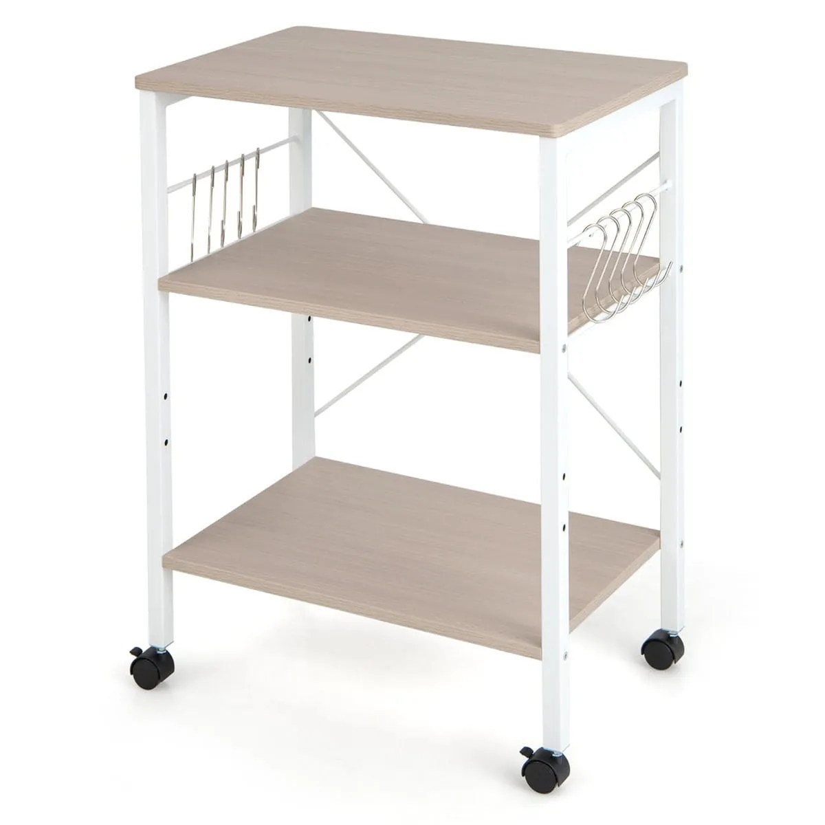 Nasz wózek to doskonałe rozwiązanie do kuchni, salonu, jadalni, kawiarni hotelu czy biura. Na dwóch półkach i blacie swobodnie zmieścisz kuchenkę mikrofalową, ekspres do kawy, zastawę i inne kuchenne sprzęty, drukarkę, dokumenty itp. Mocna konstrukcja ze stalowych rur i płyty MDF zapewnia trwałość i stabilność. 4 kółka, w tym 2 z hamulcami, pozwalają bez wysiłku przesuwać wózek i unieruchomić go w wybranym miejscu. Gładką powierzchnię z łatwością wyczyścisz wilgotną szmatką, dlatego nasz mebel świetnie sprawdzi się w kuchni, gdzie nietrudno o tłuste zabrudzenia. Dużo miejsca, łatwe przestawianie: Na blacie bez trudu zmieści się kuchenka mikrofalowa lub ekspres do kawy. 2 półki to idealne miejsce na sprzęty elektryczne, przyprawy, zastawę itp. 4 uniwersalne kółka (w tym 2 z blokadami) pozwalają przesuwać wózek nawet z obciążeniem i zaparkować go w wybranym miejscu. Mocna konstrukcja: Wózek wykonany jest z trwałej płyty MDF i stalowych rur. Krzyżowe wzmocnienie ze stalowych prętów dodatkowo usztywnia konstrukcję, zapewniając jej stabilność. Nakładany proszkowo lakier zabezpiecza stal przed korozją. Regulowana półka, zdejmowane haczyki: Opcja regulacji lub wyjęcia środkowej półki pozwoli Ci dopasować wózek do twoich potrzeb. 10 zdejmowanych haczyków w kształcie litery S świetnie nada się do powieszenia ściereczek i przyborów kuchennych. Wielofunkcyjność: Nasz wózek to doskonały pomocnik kuchenny, na którym umieścisz kuchenkę mikrofalową i inne sprzęty. Sprawdzi się też w salonie jako półka na książki czy w biurze jako mobilna konsola pod drukarkę i dokumenty. Łatwy montaż i czyszczenie: W zestawie znajdziesz czytelna instrukcję, która pozwoli Ci na bezproblemowy montaż wózka. Również jego czyszczenie jest niekłopotliwe - wystarczy przetrzeć go wilgotną szmatką. Zawartość opakowania: 1 x Wózek 10 x Haczyk 1 x Instrukcja