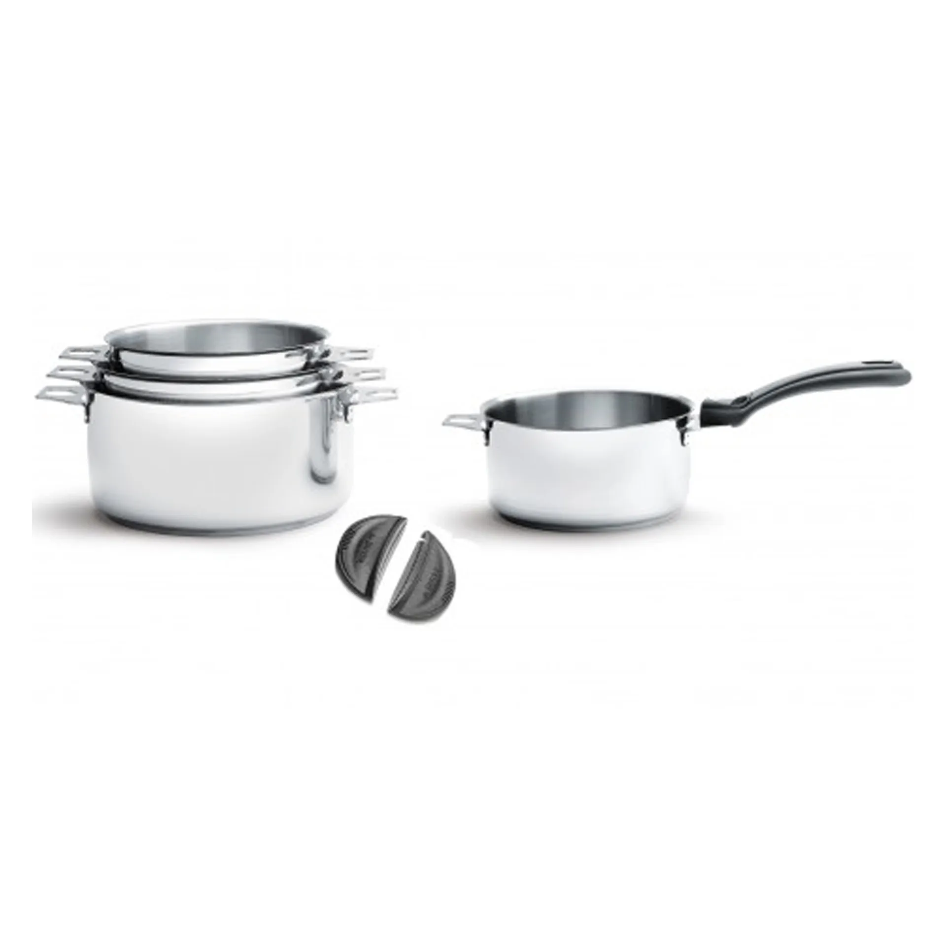 TWISTY Zestaw 4 garnków z dwoma uchwytami i rączką w kolorze czarnym / DE BUYER
