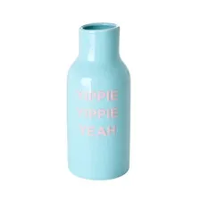 Wazon wykonany z ceramiki w kolorze soft blue z różowym napisem YIPPIE YIPPIE YEAH duńskiej marki Rice.