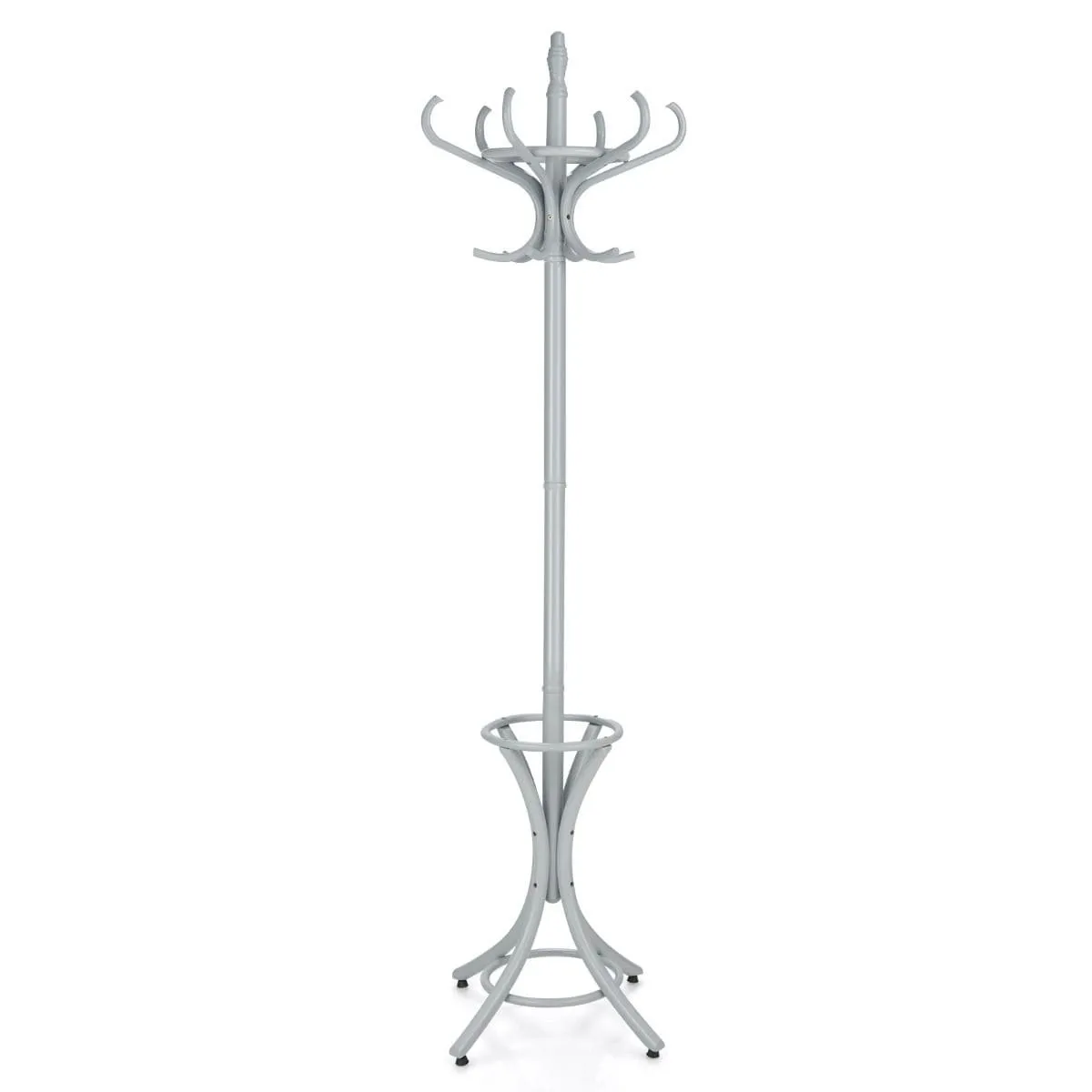 Wieszak na ubrania – nie może zabraknąć go w Twoim przedpokoju Wygodny wieszak na ubrania to nie tylko duże ułatwienie podczas codziennego zakładania kurtki lub płaszcza; dzięki swojej budowie obrotowy wieszak na ubrania pomieści więcej okryć wierzchnich niż tradycyjny wieszak montowany na ścianie. Dodatkowa przestrzeń do przechowywania parasoli przyda się szczególnie podczas deszczowych dni. Jeśli korytarz w Twoim mieszkaniu nie jest zbyt szeroki i często borykasz się z problemem spadających z przeładowanych wieszaków kurtek i płaszczy, zdecydowanie zainwestuj w wieszak obrotowy na ubrania. Prosty wieszak obrotowy na ubrania: uniwersalne rozwiązanie do domu i biura Prosty stojak obrotowy na ubrania zapewnia dostęp do wszystkich powieszonych na nim kurtek, płaszczy i torebek. Ponadczasowy design sprawia, że wieszak świetnie wpisuje się w każdą aranżację korytarza. Niezależnie od tego, czy posiadasz wąski, słabo oświetlony przedpokój, czy też przestronny korytarz łączy się z otwartym salonem, prosty wieszak z drewna zawsze dobrze się prezentuje. Zwróć uwagę na to, by było to rozwiązanie praktyczne i ułatwiające codzienne funkcjonowanie. Drewniany wieszak na ubrania obrotowy możesz bez problemu ustawić w taki sposób, by z łatwością sięgnąć także po rzadziej używane ubrania i dodatki. Wieszak tego rodzaju sprawdzi się doskonale nie tylko w domach i mieszkaniach; przyda się również w przychodniach, gabinetach, salonach kosmetycznych – wszędzie tam, gdzie klienci spędzają dłuższy czas i zdejmują odzież wierzchnią. Wygodny obrotowy wieszak stojący jest funkcjonalny i nie zajmuje dużo miejsca. Cechy Stylowy drewniany wieszak idealny do domu, biura oraz restauracji! Duża przestrzeń do przechowywania - 2-warstwowa struktura 6 dużych oraz 6 mniejszych haczyków zapewnia dużą przestrzeń do przechowywania Twoich kurtek, szali i toreb. Dolna część wieszaka jest idealnym miejscem do organizacji parasoli Obrotowa głowica - obrotowa budowa górnej części wieszaka ułatwia dostęp do wszystkich ubrań Stabilna konstrukcja - solidna konstrukcja z wysokiej jakości lakierowanego drewna brzozowego zapewnia trwałość na lata Klasyczny design - dzięki eleganckiemu stylowi, wieszak świetnie sprawdzi się zarówno w domu, biurze, jak i restauracji. Ponadczasowa forma doskonale pasuje do każdego motywu dekoracyjnego Łatwość montażu - wieszak jest bardzo prosty w montażu. Wszystkie elementy potrzebne do instalacji zostały dołączone do zestawu