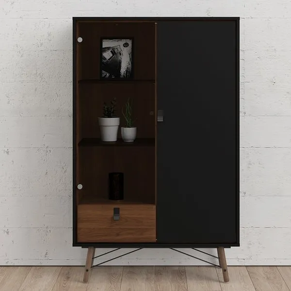Witryna dwudrzwiowa z szufladą czarna / orzech mat 102 x 162 cm Ryan