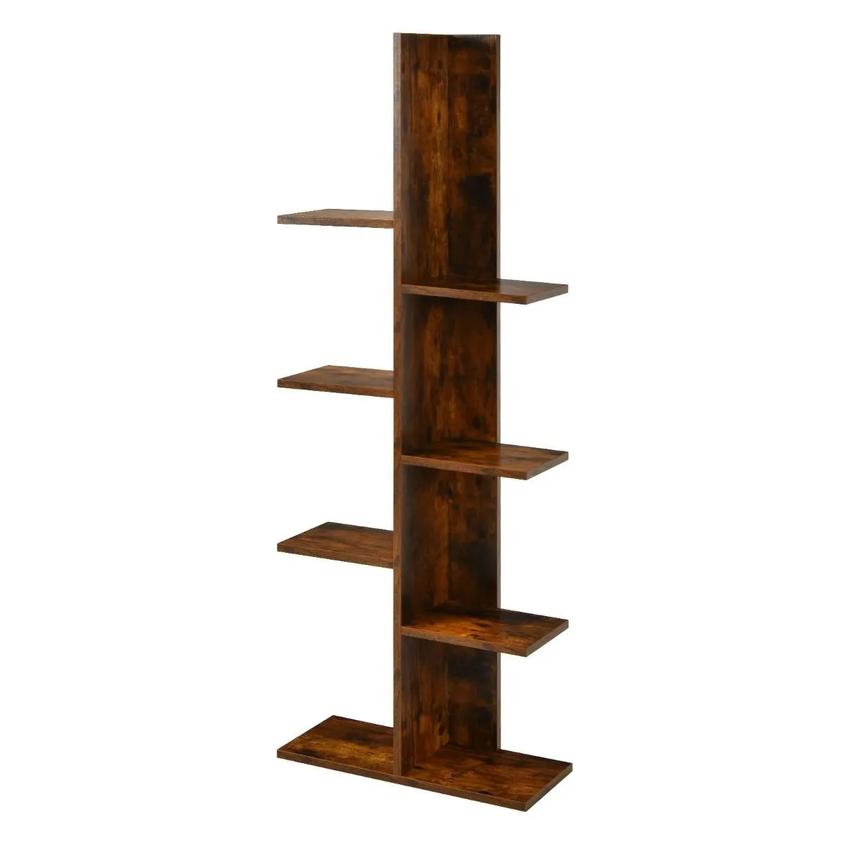 Wolnostojący drewniany regał z 8 półkami brązowy