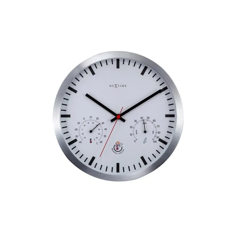 Zegar ścienny Weather Station marki Nextime jest propozycją dla wszystkich, którzy oprócz godziny chcą znać także temperaturę oraz wilgotność w pomieszczeniu. Czasomierz jest właściwie stacją pogodową pokazującą również te dwa parametry.