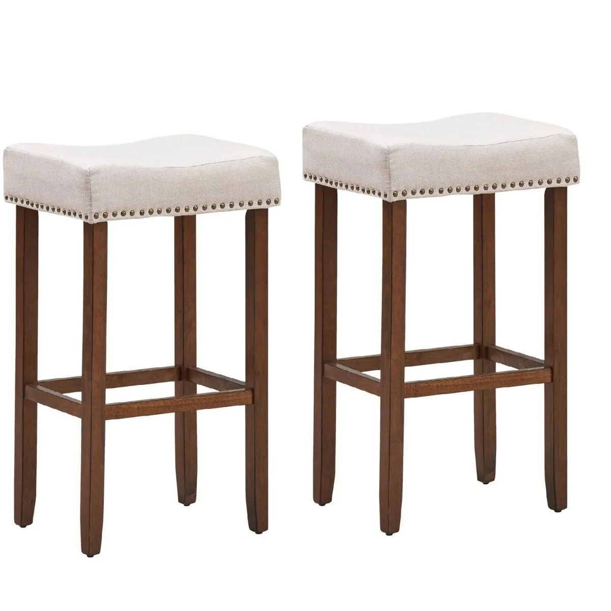 Zestaw 2 stołków barowych Nasze nowoczesne stołki barowe są bardzo wygodne. Dzięki solidnej drewnianej konstrukcji mogą być używane przez wiele lat. Ich przestrzeń do siedzenia wyściełana jest miękką gąbką i pokryta delikatną tkaniną. Ergonomiczny kształt zapewnia najwyższy komfort użytkowania. Dzięki klasycznym zdobieniom na złączeniach pufy stanowią znakomity element dekoracyjny pomieszczenia. Szczegółowa instrukcja dołączona do opakowania ułatwia proces montażu. Dzięki prostemu i eleganckiemu designowi doskonale sprawdzą się umieszczone w domu, barze, biurze lub sypialni. Wygodne siedzenie: Przestrzeń do siedzenia wyściełana została elastyczną pianką, która zapewnia najwyższy komfort siedzenia. Została ona obszyta odporną na zużycie i oddychającą tkaniną. Materiały te są pozbawione toksyn, bezwonne oraz starannie dobrane w celu zachowania najwyższej jakości wykonania. Solidne i wytrzymałe drewniane nogi: Nogi stołków wykonane są z trwałego drewna kauczukowego, dzięki czemu wytrzymują obciążenie aż do 120 kg. Antypoślizgowe podkładki na spodzie nóżek chronią podłogę przed zarysowaniami. Ergonomiczna konstrukcja: Nasze hokery są bardzo stabilne i wygodne. Ich wysokość wynosi 74 cm, dzięki czemu nadają się do umieszczenia obok lad barowych. Cztery antypoślizgowe łączenia zwiększają stabilność i bezpieczeństwo użytkowania. Nowoczesny i estetyczny design: Dzięki zdobieniom na łączeniu puf zestaw prezentuje się bardzo estetycznie i stylowo. Stołki doskonale sprawdzą się umieszczone w kuchni, barze lub sypialni. Dane szczegółowe produktu: Wymiary całkowite: 43 x 33 x 74 cm (dł. x gł. x wys.). Komplet śrub dołączony do zestawu pasuje do wstępnie wywierconych otworów. Szczegółowa instrukcja ułatwia cały proces montażu.   Paczka z produktem zawiera: 2 x Hokery barowe 1 x instrukcja
